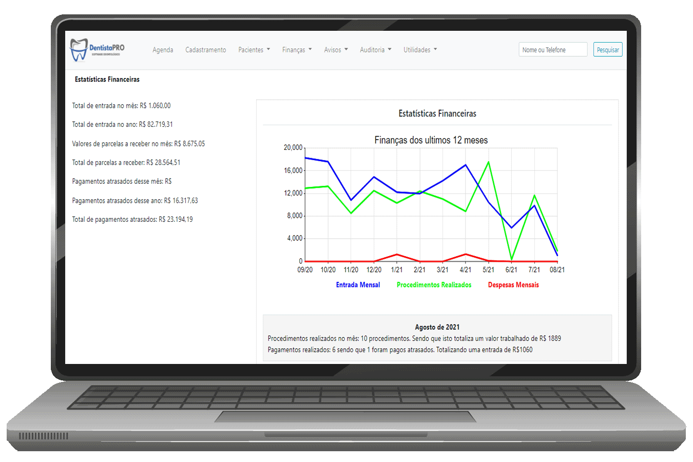 O módulo de Auditoria e Estatísticas do DentistaPRO transforma informações em insights valiosos sobre seu consultório. Com ele, você pode:
