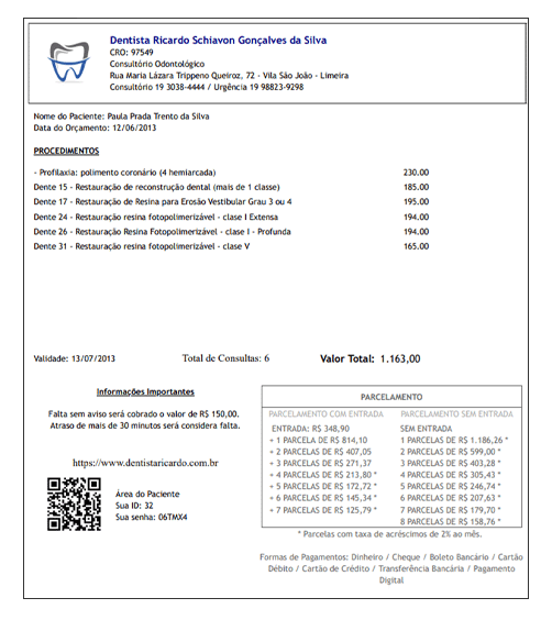 Além disso, diferentemente de outros sistemas, não há limites ou cobranças extras para a emissão de recibos, contratos, orçamentos e receituários. Tudo fica registrado na ficha clínica do paciente, permitindo um acompanhamento completo do histórico de cada atendimento.
