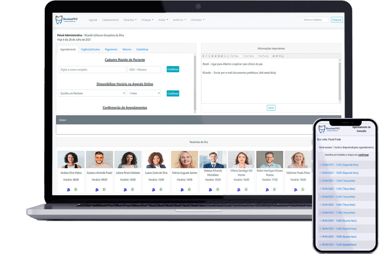 Tudo começou dentro de um consultório odontológico. Entre atendimentos, anotações em papel e a luta diária para equilibrar gestão e cuidado ao paciente, surgiu a necessidade de algo maior: uma ferramenta que realmente fizesse a diferença na rotina do cirurgião-dentista. Foi assim que nasceu o DentistaPRO.Criado em 2009 por um dentista que conhece, na prática, os desafios da profissão, o DentistaPRO não é apenas um software. É um parceiro estratégico para quem deseja mais organização, eficiência e liberdade no consultório. Durante anos, ele foi testado e aprimorado dentro da realidade clínica, evoluindo com base nas necessidades reais de seus usuários.Mas a história não termina aqui. Em 2021, o DentistaPRO foi lançado para o mercado, levando para milhares de dentistas uma solução completa, sem burocracias, sem complicações – apenas tecnologia de ponta para simplificar o que realmente importa.